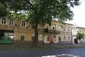 Двухэтажный дом с восемью окнами по горизонтали и с парадным входом построен в стиле раннего классицизма. Над его парадным входом устроен большой балкон. Въезд во двор здания с металлическими воротами находится в его левой части. Левое продолжение основного корпуса здания построено значительно позднее.