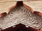 Фронтоны дома, отделанные майоликовой мозаикой, и искусная резьба дверных проёмов наполнены сказочно-былинными мотивами. Основной тематикой узоров является волшебный сад: на торце здания возвышается яркое солнце, освещающее причудливые цветы и растения. Некоторые искусствоведы также отмечают в убранстве черты скандинавского модерна: изображения драконов, медведей, рыб и сов, витиевато переплетающихся друг с другом. Отдельное внимание уделено мифическим птицам: гамаюн, феникс и сирин охраняют подъезды дома, а дымоход выполнен в виде спящей совы[2][6][7].