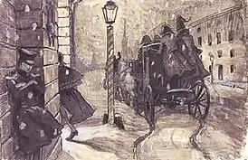 ![]() А. Н. Бенуа. «Германн у дома графини» (1905) | |