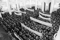 После смерти Владимира Ленина, 21 января 1924 года, церемония прощания прошла в Колонном зале. Для организации похорон была создана комиссия под руководством Феликса Дзержинского. После процессии вдоль Красной площади гроб понесли к Дому Союзов и установили в Колонном зале, где он находился с 23 по 27 января. За это время здание посетили более 50 тысяч человек, всего был возложен 821 венок[39][40][3][41].