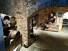 Исторические погреба, построенные в 1334 году, — единственная сохранившаяся в оригинале историческая часть дома. Изначально они использовались как складские помещения. Здесь хранили запасы вина и привезённые торговцами товары — зерно, лён, мёд, воск и многое другое. Сегодня тут можно увидеть настоящую римскую печь, с помощью которой обогревали дом в холодное время года, а также обстановку средневековых складов с соответствующей атрибутикой (весы и т. п.).