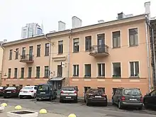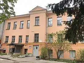 Двухэтажный кирпичный дом с цоколем, конца XIX века. Центральная часть симметричного фасада выделена неглубоким ризалитом. Под оконными проёмами второго этажа размещены прямоугольные ниши. На втором этаже есть два балкона. Исторически по центру фасада дома была проездная арка, теперь на этом месте вход в подъезд. Во время Великой Отечественной войны дом пострадал, при восстановлении была изменена внутренняя планировка, а вот фасад с улицы и дымоходы сохранились до сих пор почти в первоначальном виде.