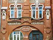 На фасаде находится архитектурно украшенный номер дома[9].