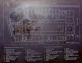 Дом, построенный полностью из кирпича, состоит из прямоугольного атриума в 68 метров длины и 28 метров ширины, окружённого портиком в 44 колонны. Из атриума был ход в различные помещения, расположенные в два этажа. Главным из них был tablinum — большой и роскошный приёмный зал. По бокам его шли шесть комнат, предназначенных, видимо, для шести весталок. Посреди атриума видны следы какого-то маленького восьмиугольного здания, тщательно уничтоженного и сравнённого с землёй; возможно, что его разрушили сами весталки перед тем, как их община была уничтожена при императоре Феодосии, и что это именно и было потайное святилище, в котором хранились священные предметы.