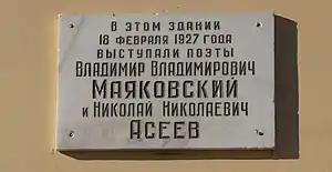 Мемориальная доска В.В. Маяковскому и Н.Н. Асееву на стене Дома Дворянского собрания