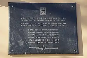 Мемориальная доска в память о воинах истребительного авиаполка "Нормандия-Неман" на стене Дома Дворянского собрания