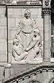 Фасад разделён на три части по высоте и в целом имеет трапециевидный профиль. Разделение на три горизонтальных части, повторяет классический приём эпохи Возрождения в части в различных нижней, средней и верхней секций. Как и его древние итальянские модели-аналоги, ряд элементов фасада, будучи ближе к глазу смотрящего, украшены изысканным декором.