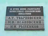 - Смоленск: Краткая энциклопедия / редкол.: Д. И. Будаев (гл. ред.) и др. — Смоленск: Траст-Имаком, 1994. — С. 86, 189. — 576 с. — 25 000 экз. — ISBN 5-86171-016-3.