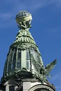 Требования к высотности зданий эффектно обошли: запрет на высотное строительство относился именно к фасаду, стоящему на красной линии, а мансарда и купол уже не являются его частью. Так, в Доме Зингера мансарда седьмого этажа начиналась уже над уровнем 11 саженей. Между Павлом Сюзором и архитектором Singer Building Эрнестом Флэггом есть одно сходство: тяготение к канонам Парижской школы изящных искусств и французской архитектуре. Для здания в Петербурге изначальный проект был разработан Флэггом, а затем работу продолжил Сюзор.