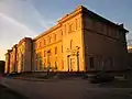 Здание состоит из двух расположенных друг к другу под прямым углом трёхэтажных корпусов и занимает практически целый квартал[1].