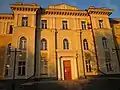 В центральной части южного фасада расположен ризалит, который оформлен портиком с классическими формами и пропорциями[1].