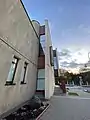 Вместо первого этажа перехода со стороны улицы Румянцева установлен декоративный забор, обеспечивающий просматриваемость между внутренним двором и улицей. Забор с таким же дизайном присутствует между зданием и домом № 7 по улице Фрунзе.