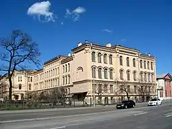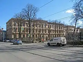 - Дом призрения для бесплатного призрения престарелых и увечных, принадлежащих к Санкт-Петербургскому купеческому и мещанскому обществам (здание ЛОГБУЗ ДКБ, ул. Комсомола, д. 6)