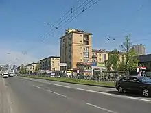Современный вид с Кантемировской улицы на угловую башню корпуса 3 в сторону Парголовской улицы