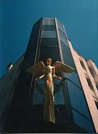 - За три дня до открытия Центра сверху упала металлическая рама, за её падением с ужасом наблюдали люди. Казалось, без жертв не обойтись. Но рама ударилась о крыло ангела и отлетела в сторону, туда, где никого не было[1].
