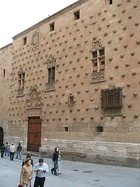 Эмблема ордена Сантьяго — раковина морского гребешка. Раковина — это символ паломничества к могиле апостола Иакова в Сантьяго-де-Компостела, ими отмечены все основные вехи на паломническом пути. Такими резными каменными ракушками из золотистого известняка рыцарь ордена дон Родриго де Мальдонадо Талавера щедро покрыл фасад своего дома. Ракушки, числом более трёхсот[1], в шахматном порядке наложены на плоскость стены. Помимо ракушек, фасад украшен резным гербом Мальдонадо и щитами.