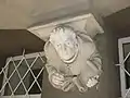 Погрудные скульптуры архитекторов размещены на фасаде здания подпирающими балкон 2 этажа: