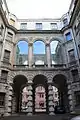 Поскольку дом с 1920-х годов был отдан под коммунальное жильё, интерьеры и парадные значительно пострадали. Уже в 1990-х годах были сбиты балясины из мрамора, покрыты граффити росписи стен, значительно повреждены лепнина и деревянные элементы декора (тумбы, перила, двери)[13][14].