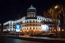 Новое здание в общих чертах сохранило первоначальное композиционное начало[1].