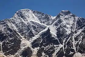 ![]() Вид на Донгузорун (слева) и Накратау (справа) с Эльбруса. Кавказ, Россия | |