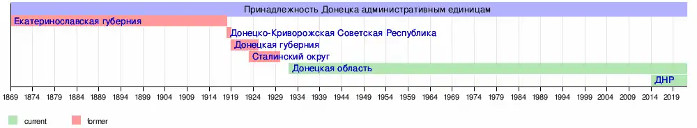 Доне́цк (укр. Донецьк; Юзовка в 1869—1924, Сталин в 1924—1929, Сталино в 1929—1961) — город на востоке Украины, на реке Кальмиус. Согласно законодательству Украины — город районного подчинения в Донецкой области. С апреля 2014 года контролируется частично признанной[10] Донецкой Народной Республикой и рассматривается ею как столица.