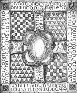 ![]() Кумдах «Стоувского Требника» — копия XI столетия с надписью: «Молиться за Доннхада мак Бриайна — короля Ирландии» | |