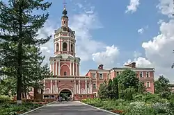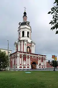 Главный вход в церковь расположен напротив Большого собора, с северной стороны ограды. По мнению историка Игоря Грабаря, её архитектором был Иван Зарудный. Выполненная в стиле московское барокко, она имеет звёздообразный план и четыре яруса. Верхний уровень отделён от внутреннего пространства сводами с открытыми арками и предназначен для звонницы[43]. В этом храме было разрешено молиться патриарху Тихону во время заточения[44]. Около паперти сохранилась чугунная кованая решётка начала XVIII века. Иконостас поставлен в 1782 году на средства Аграфены Татищевой.