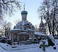 Была основана в 1997 году по благословению патриарха Алексия II. Выполнена из кирпича, покрыта кровлей на восемь скатов. Храм увенчан луковичной главой на высоком барабане, декорированном в нижней части кокошниками. Интерьер расписан в 1998-м художницей Н. П. Ермаковой. В цокольной части находится крипта с приделом в честь благоверного князя Вячеслава Чешского[52].