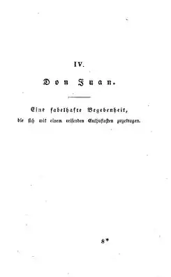 В своей новелле романтик Гофман предлагает новую трактовку «вечного образа» Дон Жуана. Для него это титаническая личность — сродни Фаусту. Среди персонажей оперы Моцарта он выводит на первый план донну Анну, которую якобы связывает со знаменитым обольстителем ненасытная тяга к вечно ускользающему идеалу[2]. Эта трактовка получила широкую популярность среди поэтов-романтиков, таких, как Мюссе и Ленау[3].