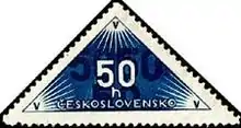 В Чехословакии доплатные доставочные марки впервые появились в 1937 году. Это были две марки номиналом в 50 геллеров (Sc #EX1, EX2). В 1946 году была напечатана ещё одна марка достоинством в 2 кроны (Sc #EX3). Выполненная по рисунку художника В. Чубана, эта миниатюра представляла собой орнаментальный мотив — ветвь липы[4][5]. Отличительной чертой всех этих марок была их треугольная форма[3].