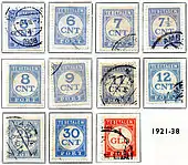 В мае — октябре 1925 года были изданы две серии доплатных марок разных номиналов, которые использовались до 1 февраля 1926 года. Эти марки были отпечатаны литографским и типографским способами на бумаге без водяного знака, а последние и с водяным знаком. Литографский выпуск существует с двумя различными зубцовками[12][13][14].