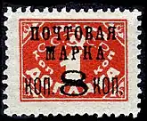 Надпечатка на доплатной марке СССР 1925 года (1927, 8 копеек)