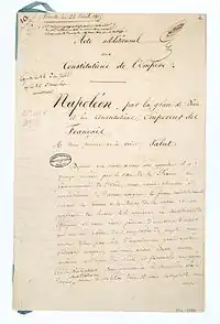 | Подписание | Наполеоном I 22 апреля 1815 года |