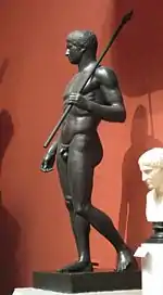 Оригинал не сохранился. Существуют многочисленные копии, в том числе в Неаполе, Ватикане (Музей Кьярамонти), Мюнхене, Флоренции. (В мраморных копиях позади левой ноги сооружена подпорка, в бронзовом подлиннике не присутствовавшая).
