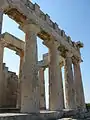 Кровлю завершали мраморной или терракотовой черепицей двоякой формы, из чередующихся плоских солен и выпуклых желобчатых калиптеров двускатных (коринфского типа) или полукруглого сечения (лаконских). Черепицы укладывали на деревянную обрешетку. Дождевая вода стекала по соленам между калиптерами. Торцы калиптеров закрывали полукруглыми щитками из мрамора или терракоты — антефиксами (впереди прикрепленными). Антефиксы часто делали фигурными, в виде пальметты или маски горгоны Медузы. Их дополняли росписью или позолотой. Издали они выглядят орнаментальным рядом по краю кровли продольной стороны храма. Расписные терракотовые антефиксы применяли этруски, древние жители Италии.