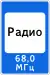 Зона приёма радиостанции, передающей информацию о дорожном движении | Участок дороги, на котором осуществляется приём передач радиостанции на частоте, указанной на знаке. |
