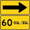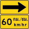 Направление поворота с рекомендуемой скоростью (на тайском и английском)