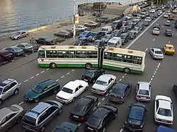 - Попытки объезда затора отдельными участниками движения по полосам, не предназначенным для движения в данном направлении, а также обочинам, тротуарам и выделенным трамвайным путям, что приводит к затору в месте их возвращения на правильную полосу движения;