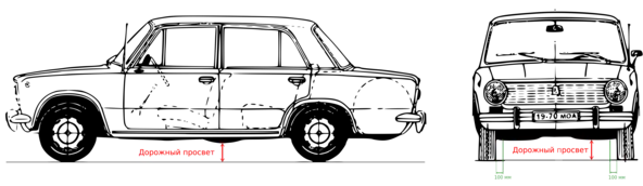 Иногда указывают два значения — просвет под передней осью и под задней, в случае переднеприводного автомобиля эти значения более или менее близки.