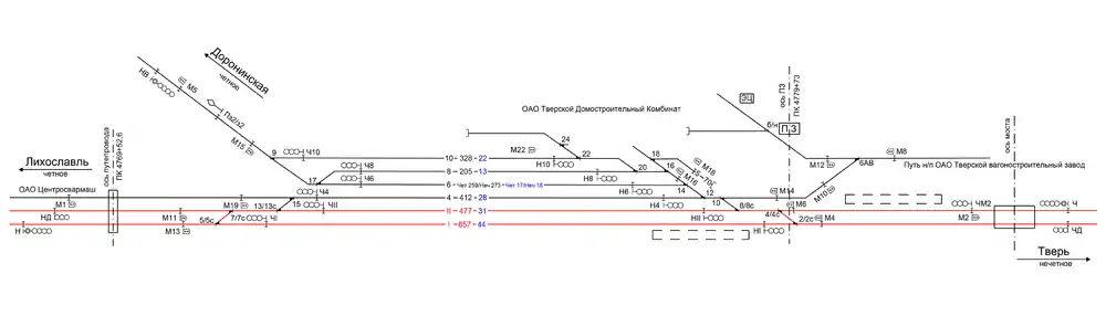 | Прилегающие перегоны | Дорошиха — Тверь (2), Дорошиха — Лихославль (2), Дорошиха — Доронинская (1) |