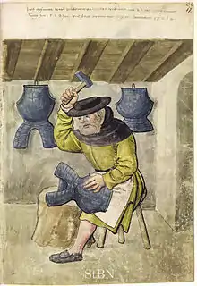 Например, в Северной и Центральной Европе, в особенности в Германии, большой властью пользовались гильдии ремесленников, которые устанавливали жёсткие правила относительно численности мастеров и подмастерьев, продвижения их карьеры и качества выпускаемой продукции. Именно по отношению к этим регионам справедливы классические описания гильдейского ремесленного быта, известные по школьным учебникам. В Нюрнберге в одной мастерской дозволялось работать одному мастеру, двум подмастерьям и одному ученику. Вся продукция проходила тщательную проверку перед тем, как на неё ставилось клеймо города. В Аугсбурге ограничения на количество работников в мастерской отсутствовали, и в некоторых из них могли одновременно работать до 20—30 мастеров и столько же или больше подмастерьев. Однако для того, чтобы стать мастером, нужно было отработать как минимум четыре года учеником, столько же подмастерьем и предоставить в качестве «шедевра» полный доспех. Тем не менее, даже в условиях подобных ограничений масштабы производства были для тех лет потрясающими: например, в 1295 году для войск французского короля Филиппа Красивого в Брюгге было заказано 2853 шлемов, 6309 круглых щитов, 4511 кольчужных рубах, 751 пара латных перчаток, 1374 горжетов и 5067 бригандин (coat-o-plate).