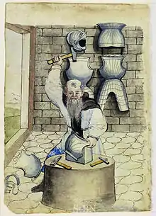 Средневековая металлургия была способна выдавать в массовых количествах лишь два вида железных сплавов — сыродутное железо и чугун. Сыродутное железо (исторический термин, по сути — низкоуглеродистая сталь) — мягкий, ковкий материал с очень низким содержанием углерода и большим количеством примесей, его получали из железной руды в печи с температурой около 1200 °C (что ниже температуры полного плавления железа). Извлечённую из печи пористую массу — крицу или блюм — проковывали вручную, чтобы удалить включения шлака (уже в позднее Средневековье для этой трудоёмкой работы приспособили механические молоты с приводом от водяного колеса). В результате получался прокованный кусок железа с крупной кристаллической решёткой и значительным содержанием примесей. Чугун — сплав, напротив, с мелкой кристаллической структурой и очень высоким, порядка 2 %, содержанием углерода — получали в большой печи при более высокой температур — около 1500 °C. Слитки чугуна имели мелкую кристаллическую структуру и были прочными, но хрупкими, нековкими.