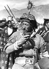 В Сиккиме и Бутане для защиты тела традиционно использовалась кольчуга. Голова защищалась цельнокованым стальным шлемом сфероконической формы, с козырьком и подкладкой[2]. Шлем также имел три толстых простёганных тканевых клапана из парчи — два прикрывают уши, а третий — заднюю часть шеи. Вне боевой обстановки клапаны можно откинуть на купол шлема. Шея защищается также воротником из красной фланели, подбитым кожей. Поверх кольчуги надевался доспех зерцального типа, в виде четырёх крупных дисков, соединённых ремнями, наподобие индо-персидской чарайны — по одному диску прикрывали грудь, спину, и каждый бок. Каждые два диска соединялись между собой парой диагонально перекрещивающихся ремней, помимо этого, имелись ещё два плечевых ремня[2]. Аналогичный доспех использовался и в Непале[1] (см. иллюстрацию). Талия прикрывалась широким поясом из узких, вертикально расположенных металлических пластин, взаимно перекрывающих друг друга, приклёпанных к кожаной основе[2]. Как правило, с доспехами использовалась и специальная поддоспешная одежда из кожи или ткани. Такой доспех находил применение в Тибете вплоть до XX века[3].