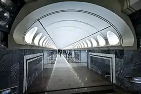 Подземный переход, совмещённый с вестибюлем станции, за день до её открытия