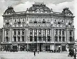 В 1895—1896 годах через бывшую усадьбу Меринга проложили четыре новые улицы — Николаевскую (сейчас Городецкого), Ольгинскую, Меринговскую (Заньковецкой) и Новую (Станиславского),[2] а на месте бывшего пруда распланировали Николаевскую площадь (сейчас площадь Ивана Франко). Эта местность, которую быстро застраивали изысканными пяти-и шестиэтажными доходными домами в стилях модерна, неоренессанса, необарокко и неоготики по проектам архитекторов Георгия Шлейфера, Эдуарда Фердинанда Брадтмана, Владислава Городецкого, Мартина Клуга, получила название «Киевский Париж»[3][4].