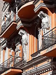Атланты держат плечами и руками эркер, или балкон, в Доме Майкапар на Лютеранской улице, 6, домах на Владимирской, 45; Богдана Хмельницкого, 33/34, или на голове куб с вазой на Доме Козеровского на Костельной, 7. Ифриты поддерживают балкон второго этажа Дома с ифритами на улице Симона Петлюры, 11/106.
