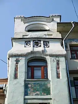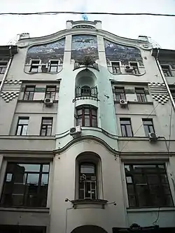Пятиэтажное здание построено в стиле сецессион под влиянием школы австрийского архитектора Отто Вагнера[13]. Ансамбль доходного дома представляет собой каре застройки с внутренним двором и несколькими корпусами[12]. Для улучшения обозрения здания и создания свободной площадки перед главным входом архитектор отодвинул линию застройки вглубь красной линии улицы[4].