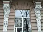 Фасад здания насыщен барочным лепным орнаментом, замки архивольт украшены гирляндами и женскими головками в раковинах со вставками растительного орнамента с посохами Гермеса. Над окнами третьего этажа видны картуши с гирляндами, между декоративными подоконниками сделаны вставки цветочного орнамента. Здание декорировано фризовыми зубчиками (сухарики, сандрики), триглифами, вставками со скульптурными украшениями маскаронам в метопах.