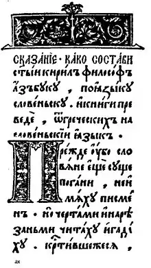 Оригинальный текст (ст.-слав.)[показатьскрыть]Прѣжде ѹбо словѣне не имѣхѫ книгъ. нѫ чрътами и рѣзами чьтѣхѫ и гатаахѫ погани сѫще. кръстивше же сѧ. римьсками и гръчьскыми писмены. нѫждаахѫ сѧ словѣнскы рѣчь безъ устроениа…