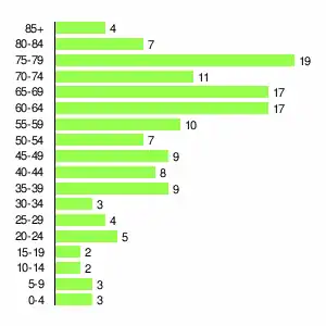 | Жителей | 489 | 605 | 531 | 426 | 333 | 268 | 223 | 191 | 140 |